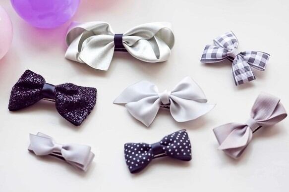 Hello. week. Silk Gray. ヘアクリップ 7個セット♡ベビーリボン♡お子様用髪飾り・結婚式・誕生日パーティー・出産お祝い